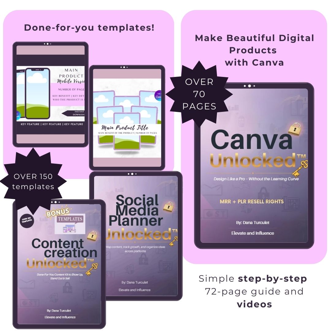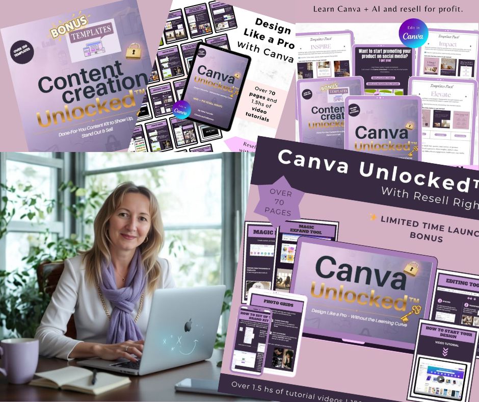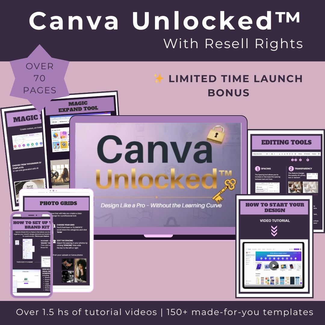 Instant access to the Canva Unlocked™ course, video tutorials, and the bonus template library and social media planner.